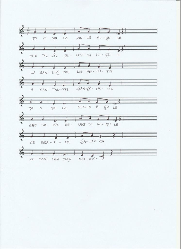 Melodia inventata sulle parole della filastrocca "Niule" , adatta per bambini di tre anni. Le attività sono perciò molto basilari.
